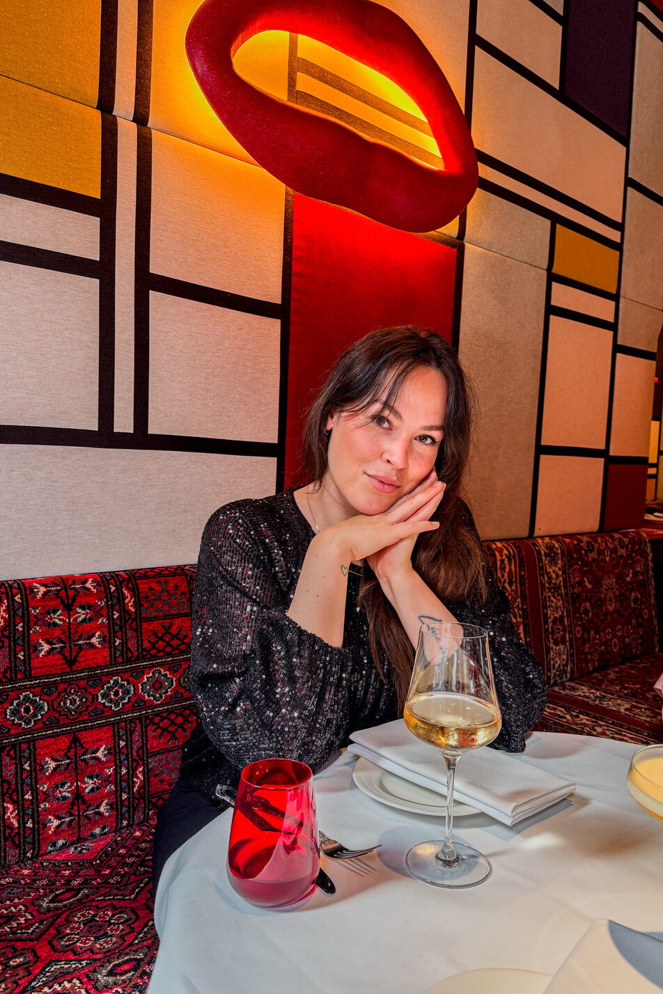 Na de lunch raakten we nog even aan de praat met de bediening en ontdekten dat Bisous ’s avonds een heel andere energie krijgt. Je kunt er namelijk niet alleen eten, maar ook blijven hangen aan de bar. Van donderdag tot en met zaterdag draait er een dj en kun je er terecht voor cocktails en een gezellige avond. Natuurlijk moesten we dat meteen testen. We gingen allebei voor een Pornstar Martini, eentje met en eentje zonder alcohol. Mega lekker en zeker voor herhaling vatbaar. Cocktails kunnen ze hier dus ook goed maken.