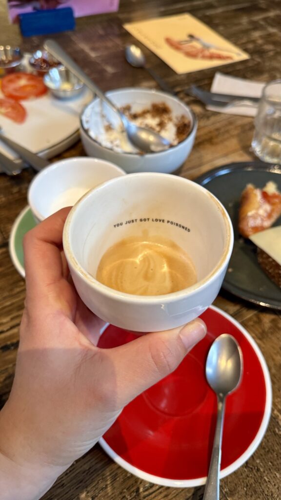 En ja, koffie is voor mij serieus belangrijk. In Bunk Amsterdam hebben ze goede koffie weet ik, dus ik hoopte dat het hier net zo goed zou zijn. En ja, dat was het! Ik bestelde meteen nog een cappuccino. Mmmm.